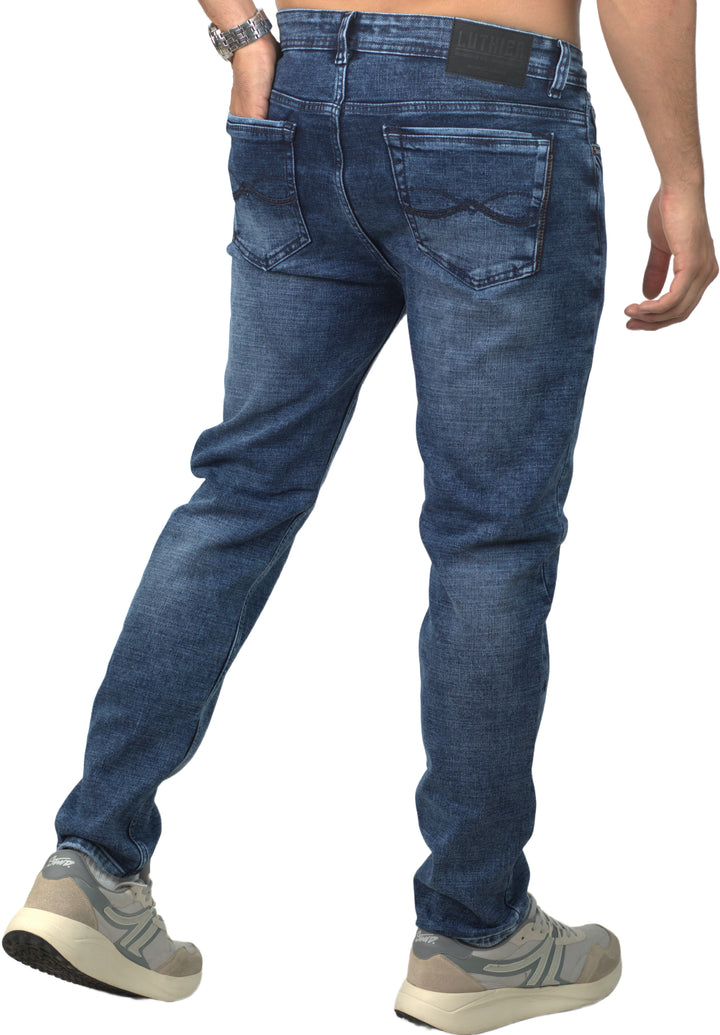 Jeans para hombre bota recta licrado color clásico con desgaste oscuro